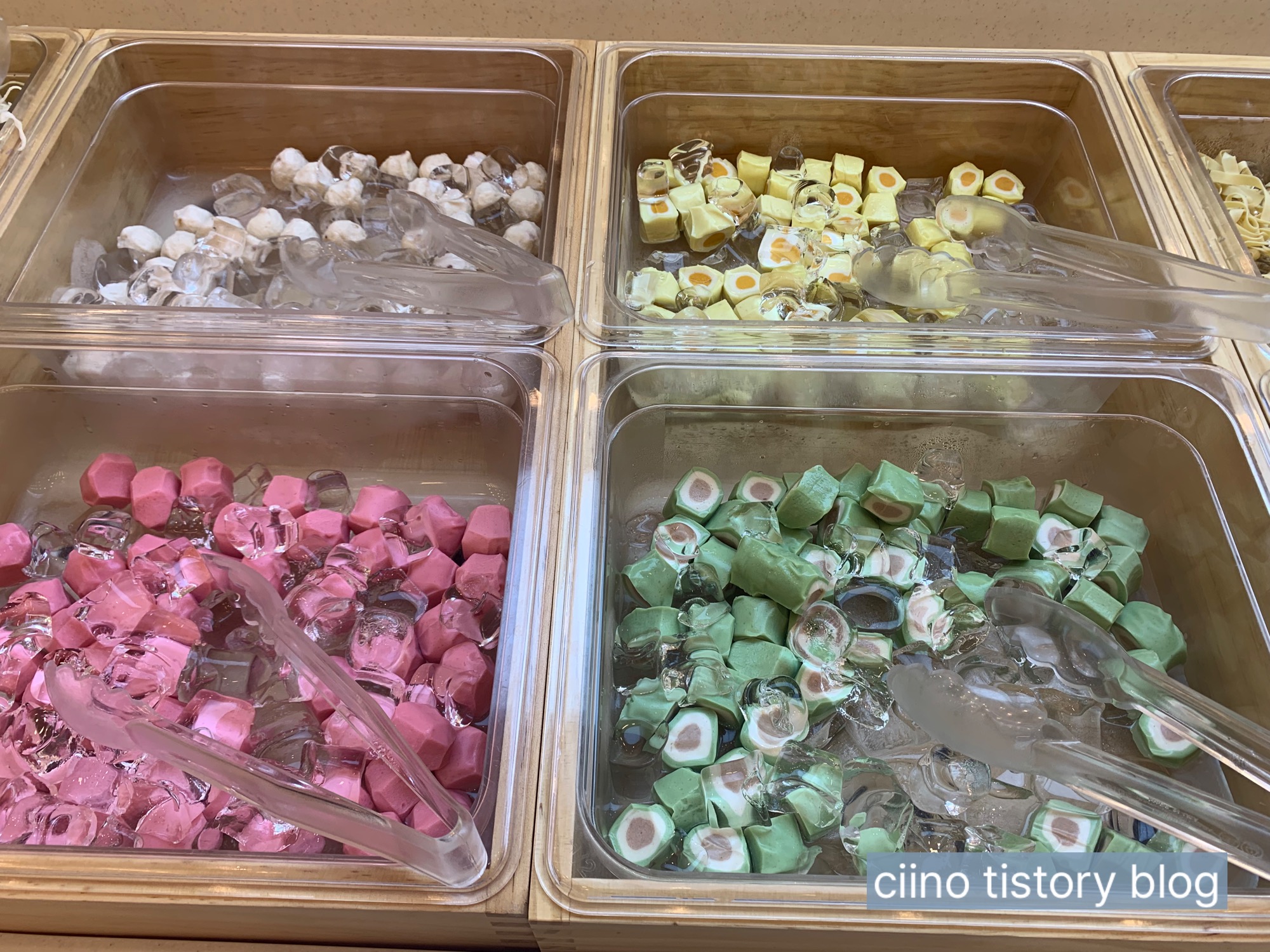 샐러드바 한쪽에 빙수 코너가 마련돼 있었는데, 눈꽃빙수 얼음에 원하는 토핑을 얹어 먹을 수 있도록 준비돼 있었습니다. 팥, 연유, 떡, 과일 등 기본 토핑은 물론, 마차 시럽도 비치돼 있어 달콤 쌉쌀한 맛을 원하는 분들에게 제격이었습니다.