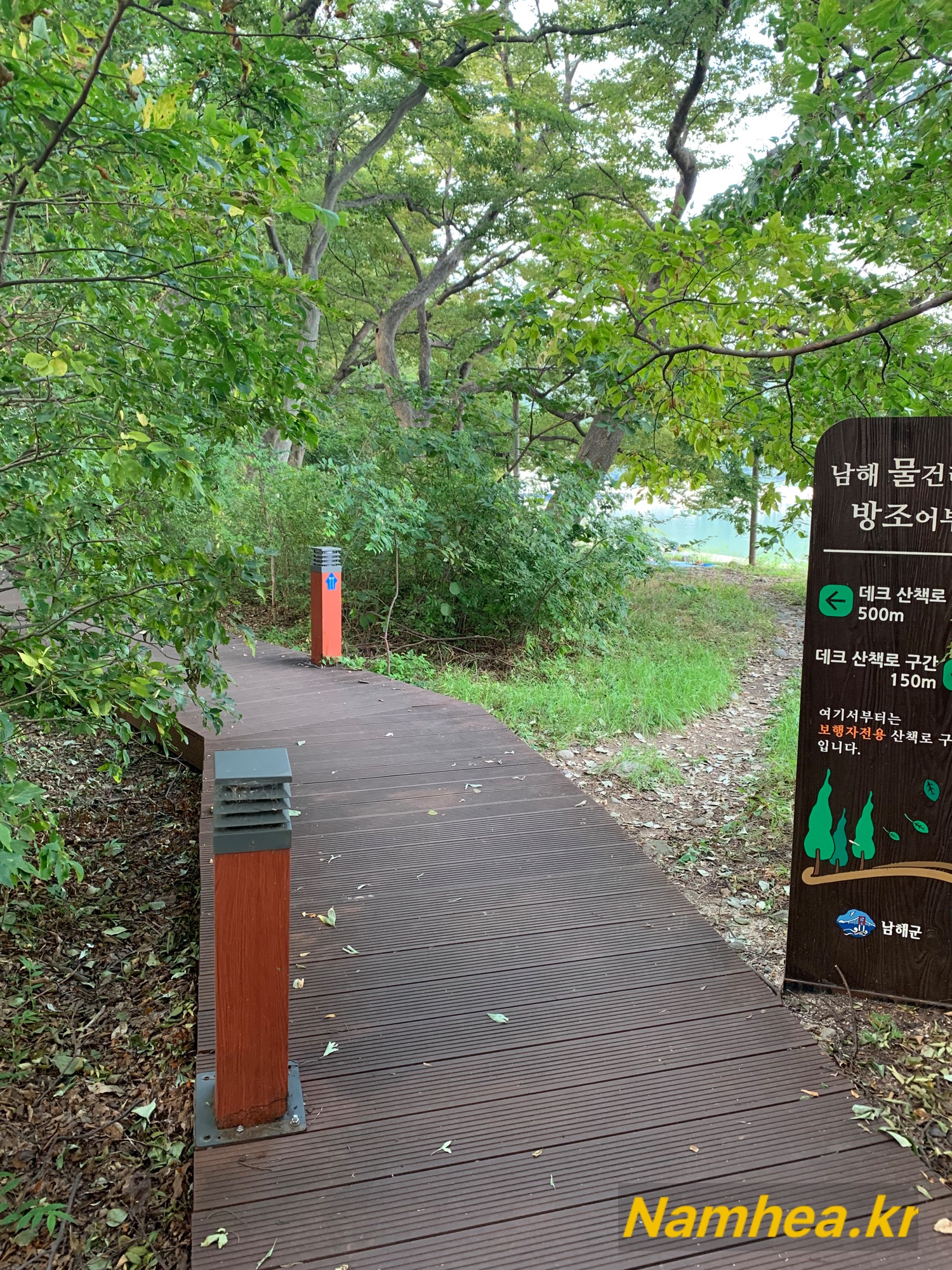 산책로가 넓지 않은 나무데크로 되어 있는데 연휴라 이용객이 있는 편이어서 한적하진 않았어요. 반대편에서 사람이 지나가면 강아지 때문에 비켜줘야 해서 그리 여유롭지 않았습니다