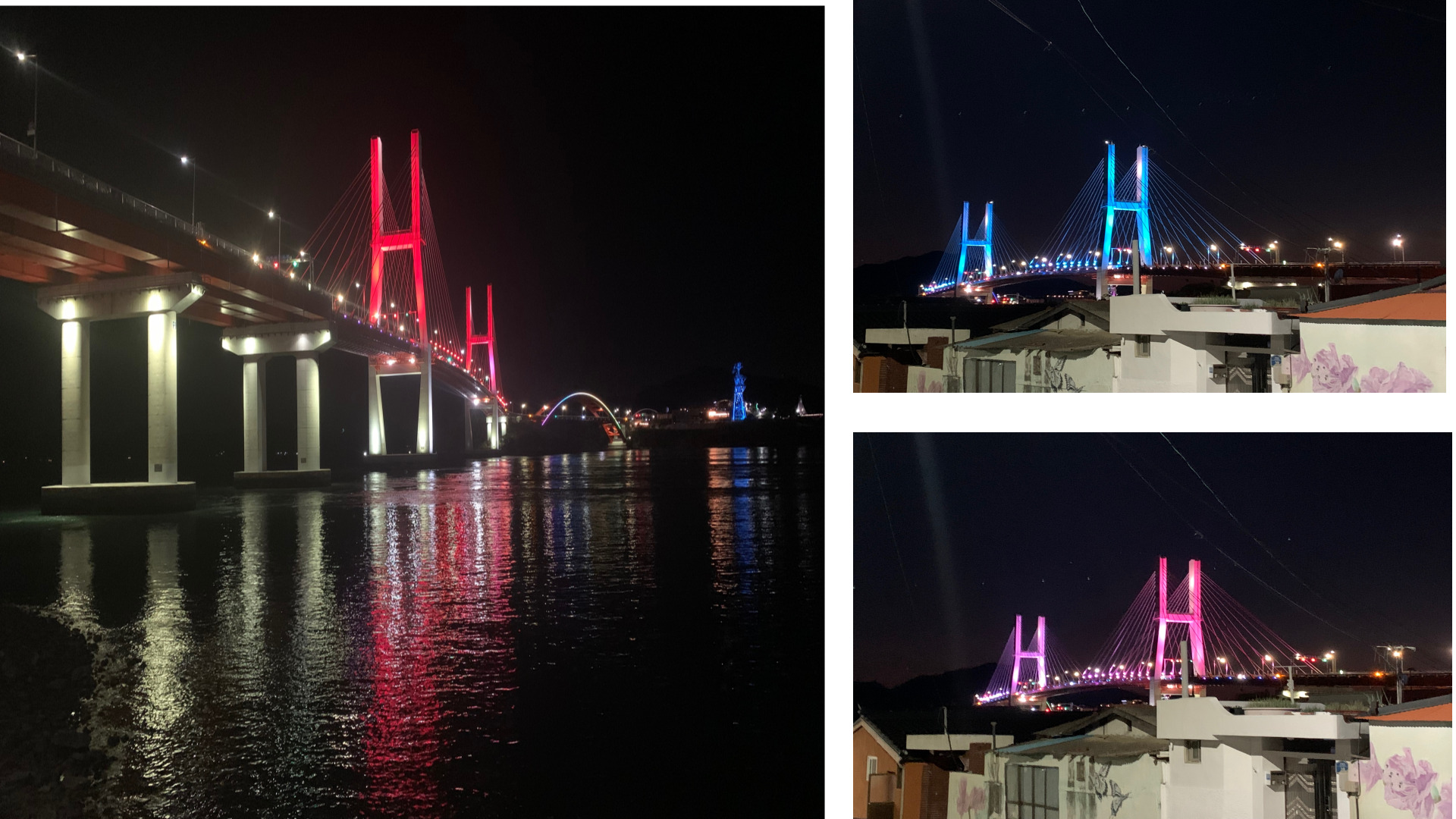 초양도를 나와 삼천포대교를 건너면 대교가 정면으로 보이는 포인트가 나옵니다. 그 자리가 개인적으로 가장 좋았습니다. 해가 거의 다 지고 난 뒤라 하늘은 보랏빛과 주황빛이 섞여 있었고, 다리 조명이 하나둘 켜지기 시작했습니다. 바다 위에 불빛이 반사돼 일렁이는 모습은 사천을 대표하는 풍경이라 해도 과하지 않습니다. 잠시 그 자리에 서서 해가 완전히 넘어갈 때까지 바라봤습니다.