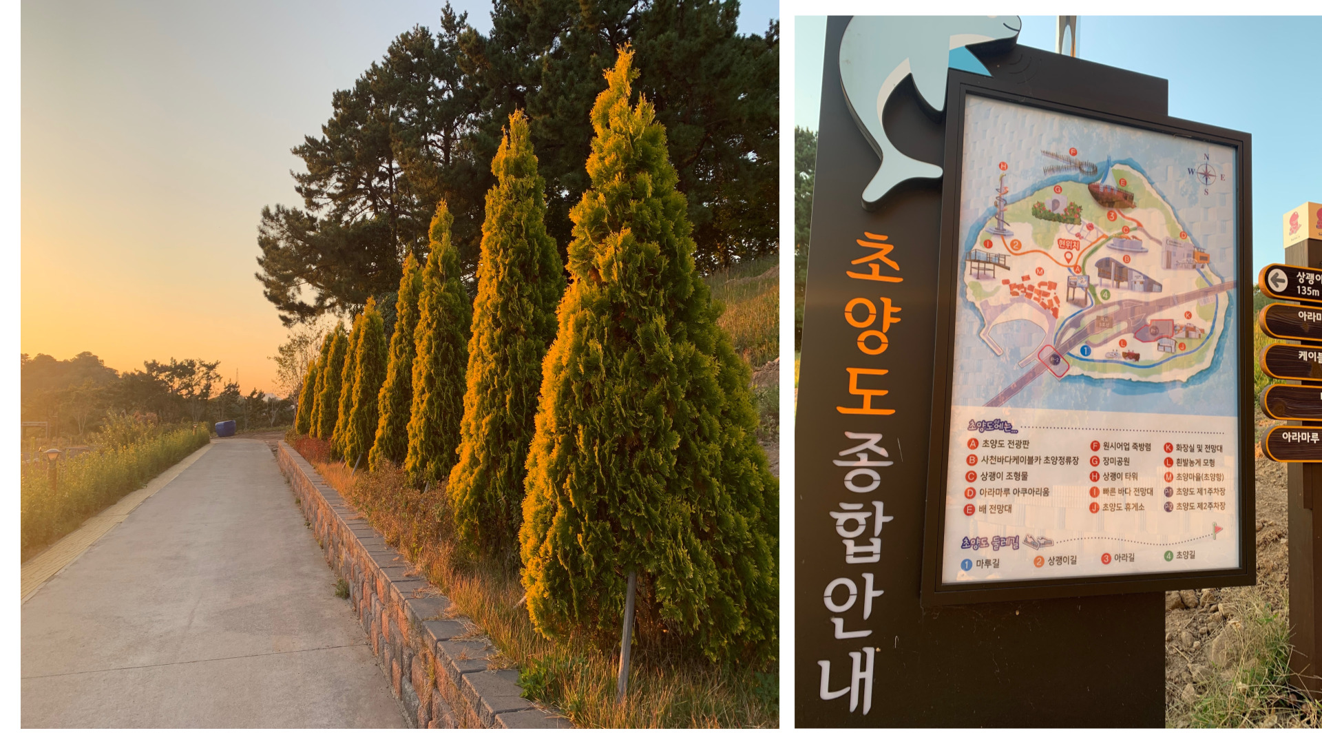 노을이 지기 시작할 무렵 초양도 방향으로 천천히 들어갔습니다. 초양도는 차로 바로 진입이 가능한 섬이라 접근이 편합니다. 들어가는 길이 좁긴 하지만 양옆으로 펼쳐진 바다 덕분에 답답하진 않습니다. 초양도 입구 근처에는 작은 공원과 산책로가 있어서, 잠깐 걷기에도 좋습니다.