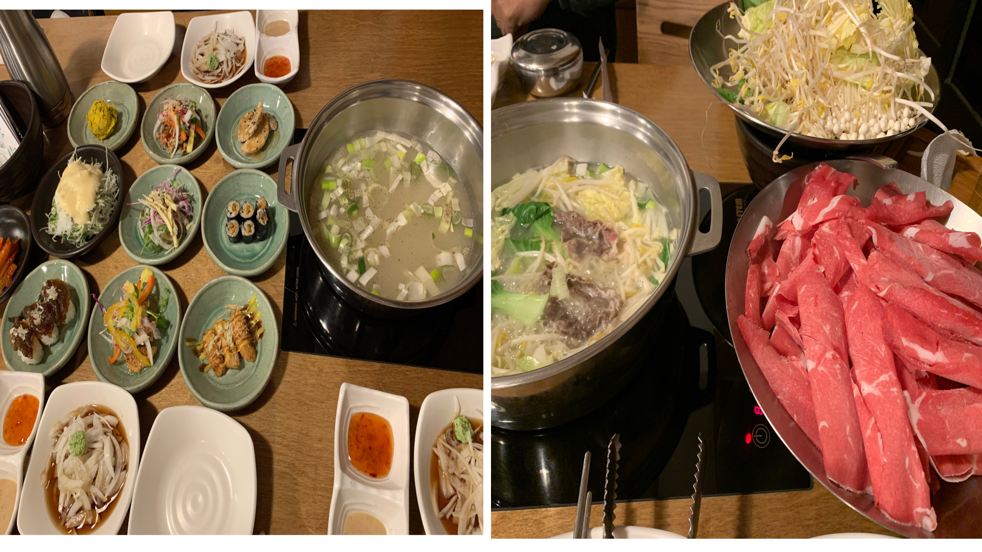 해가 진 뒤에는 근처에서 저녁 식사할 곳을 찾았습니다 검색해보니 샤브샤브 전문점이 있어서 찾아갔습니다 식당 내부는 조용했고, 다양한 반찬과 질좋은 한우가 나왔습니다