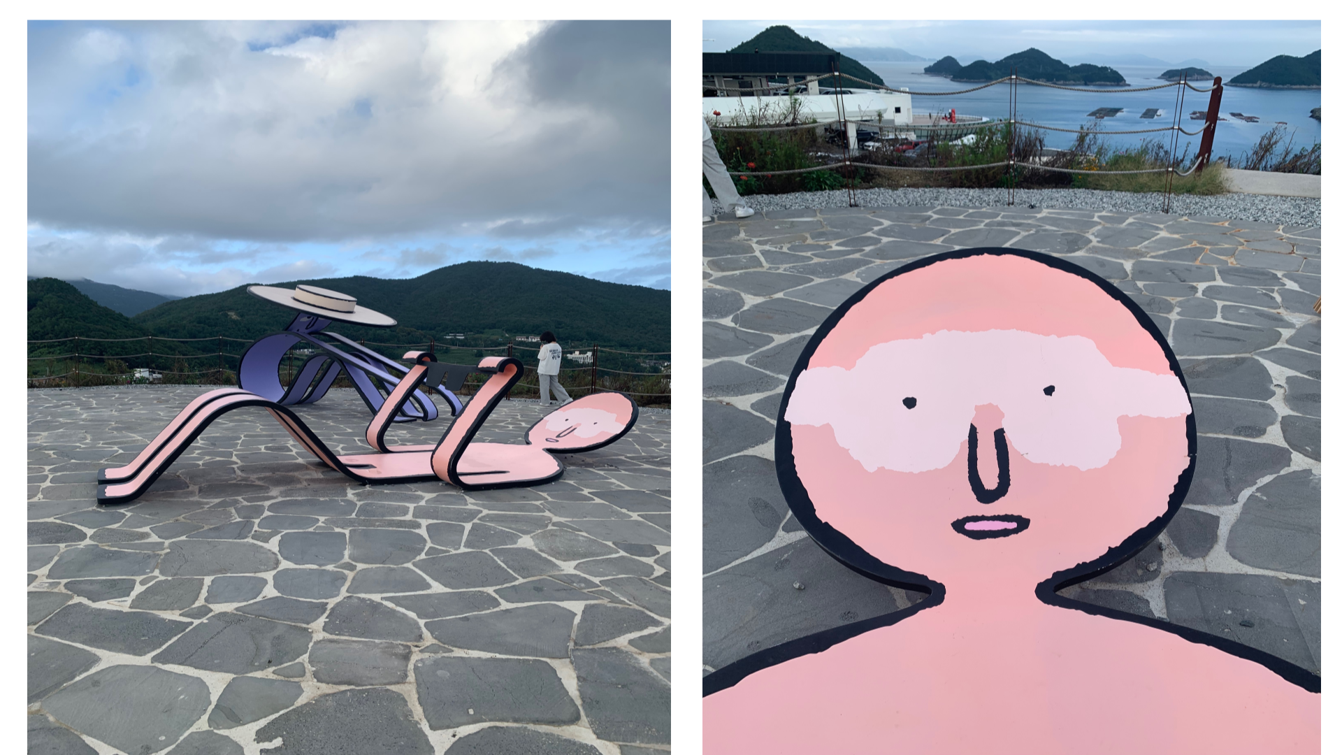 가까이서 보면 단순한 장식이 아니라 바다를 배경으로 자연스럽게 어우러지는 예술 작품 같은 느낌이었습니다.