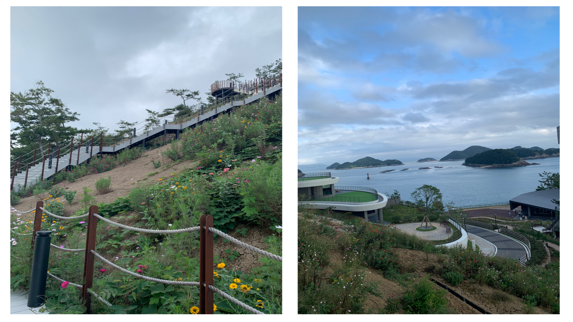 계단이 매우 많으므로 숨이 꽤 찼습니다. 그래도 뒤를 돌아보면 남해의 풍경을 한눈에 담을 수 있게 설계되어 있었습니다