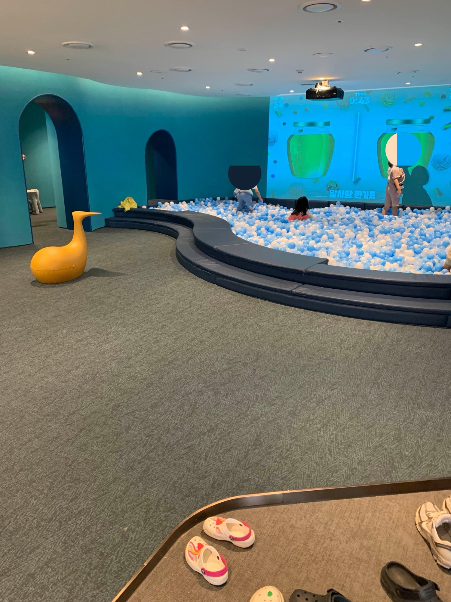 안쪽 키즈룸 공간이 눈에 띄었고 아이들이 자유롭게 놀 수 있도록 구성되어 있었습니다.