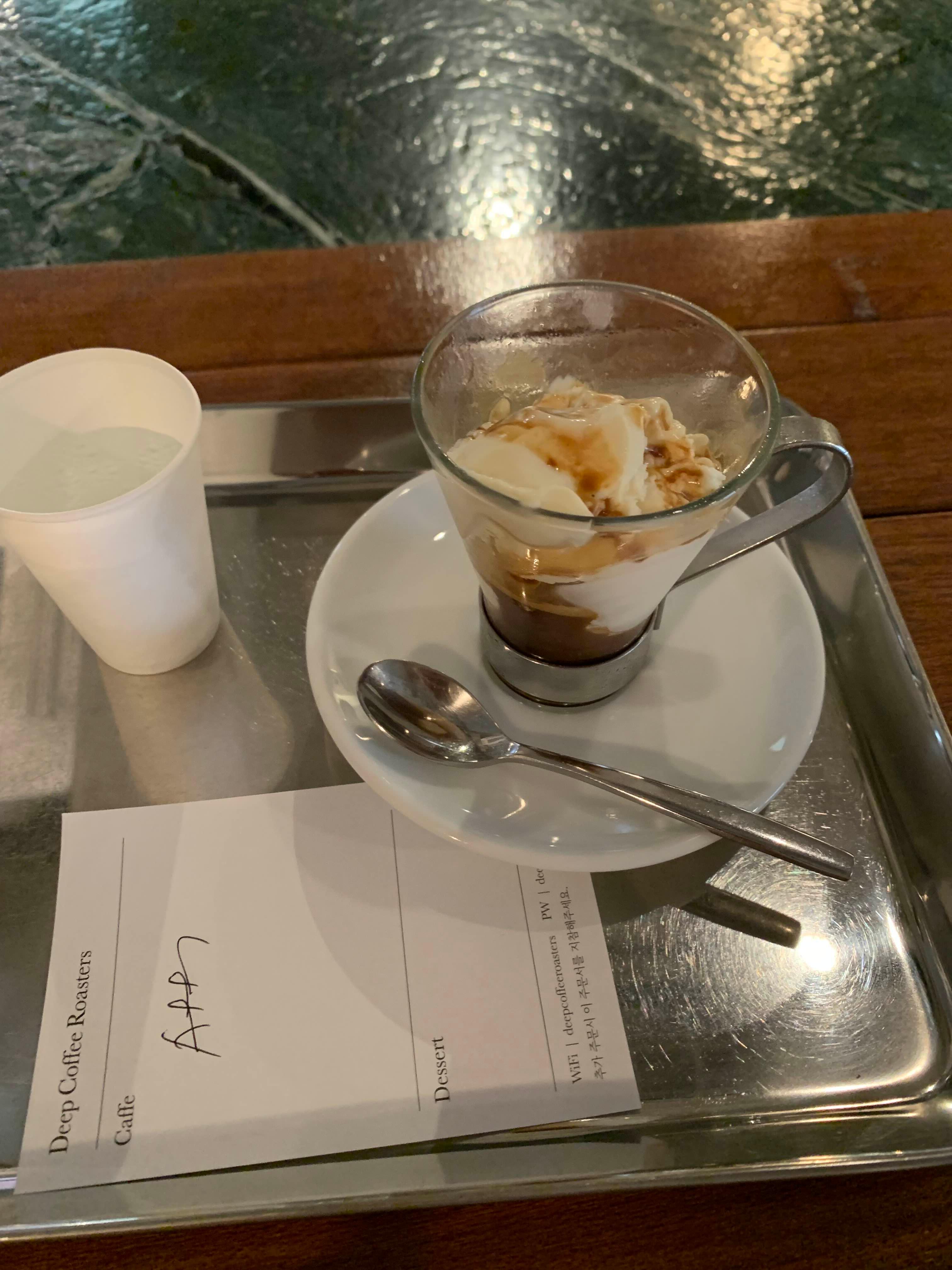 하겐다즈를 사용한 아포가토를 주문했습니다. 탄산수가 같이 제공되어서 유럽에서 갔던 에스프레소바에 온 기분이 들었습니다.