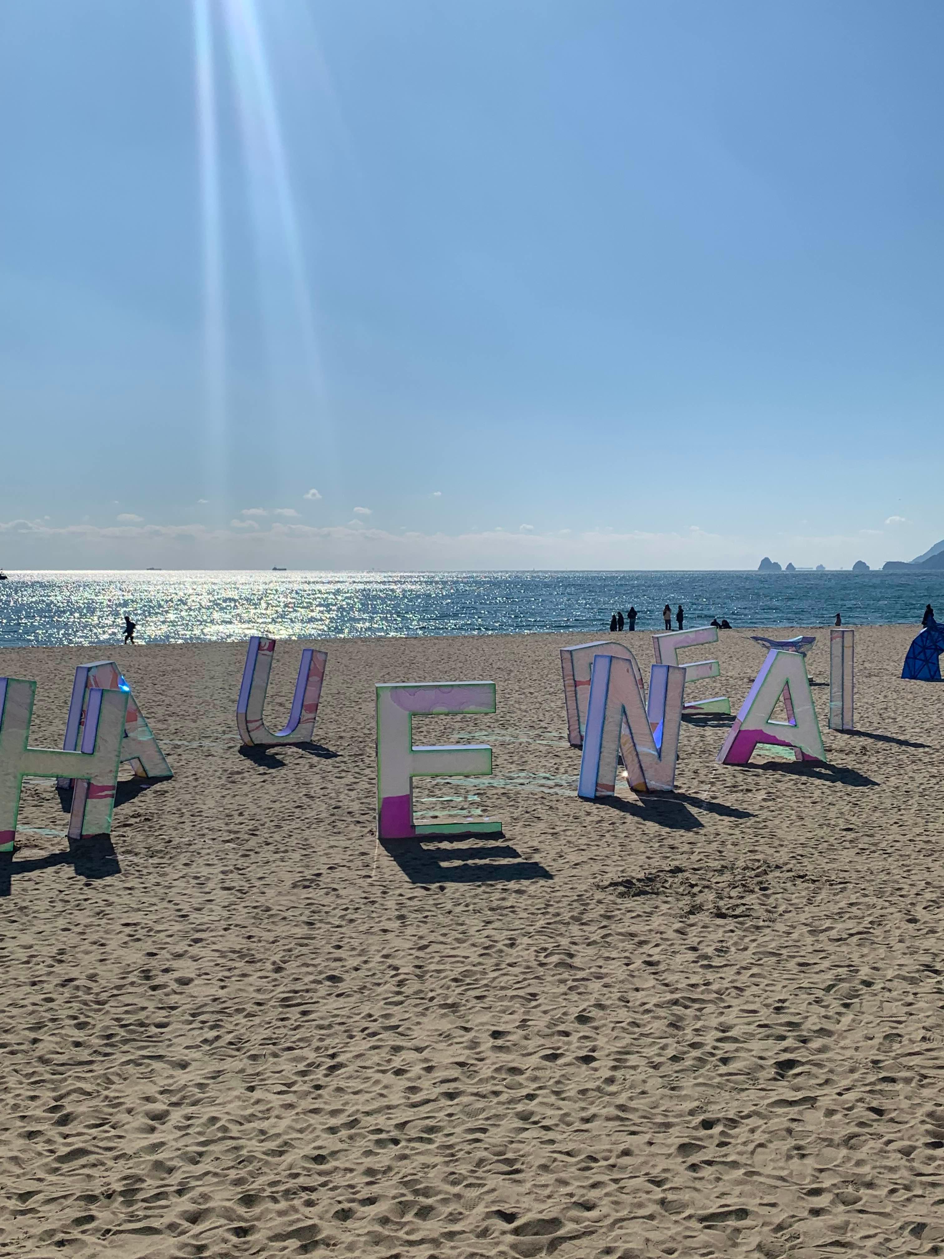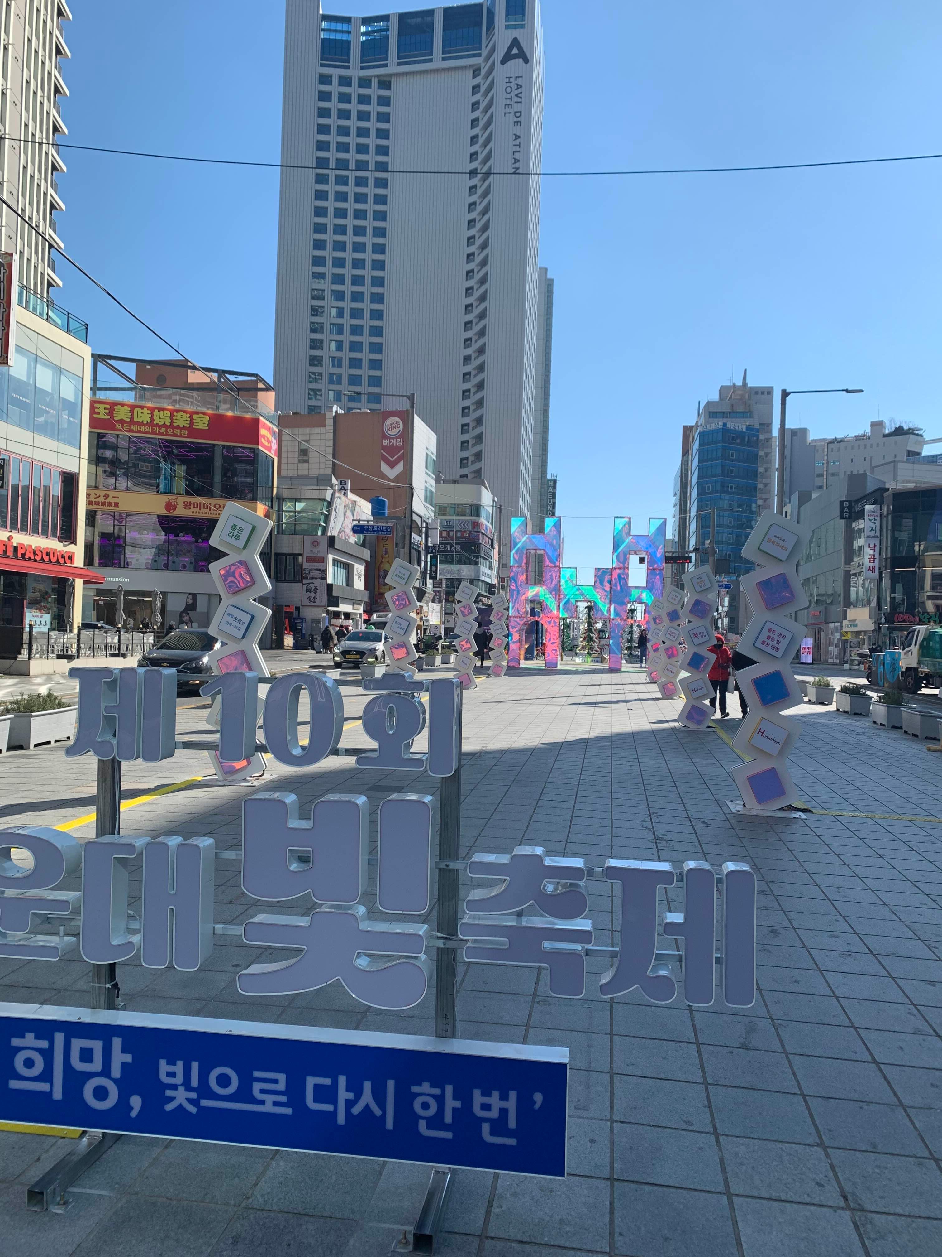 눈 내리던 홋카이도와 달리 쨍한 부산 바다도 구경하고 열심히 빛축제 준비하는 것도 구경하고 여행 마지막까지 알차게 보낸 거 같아요