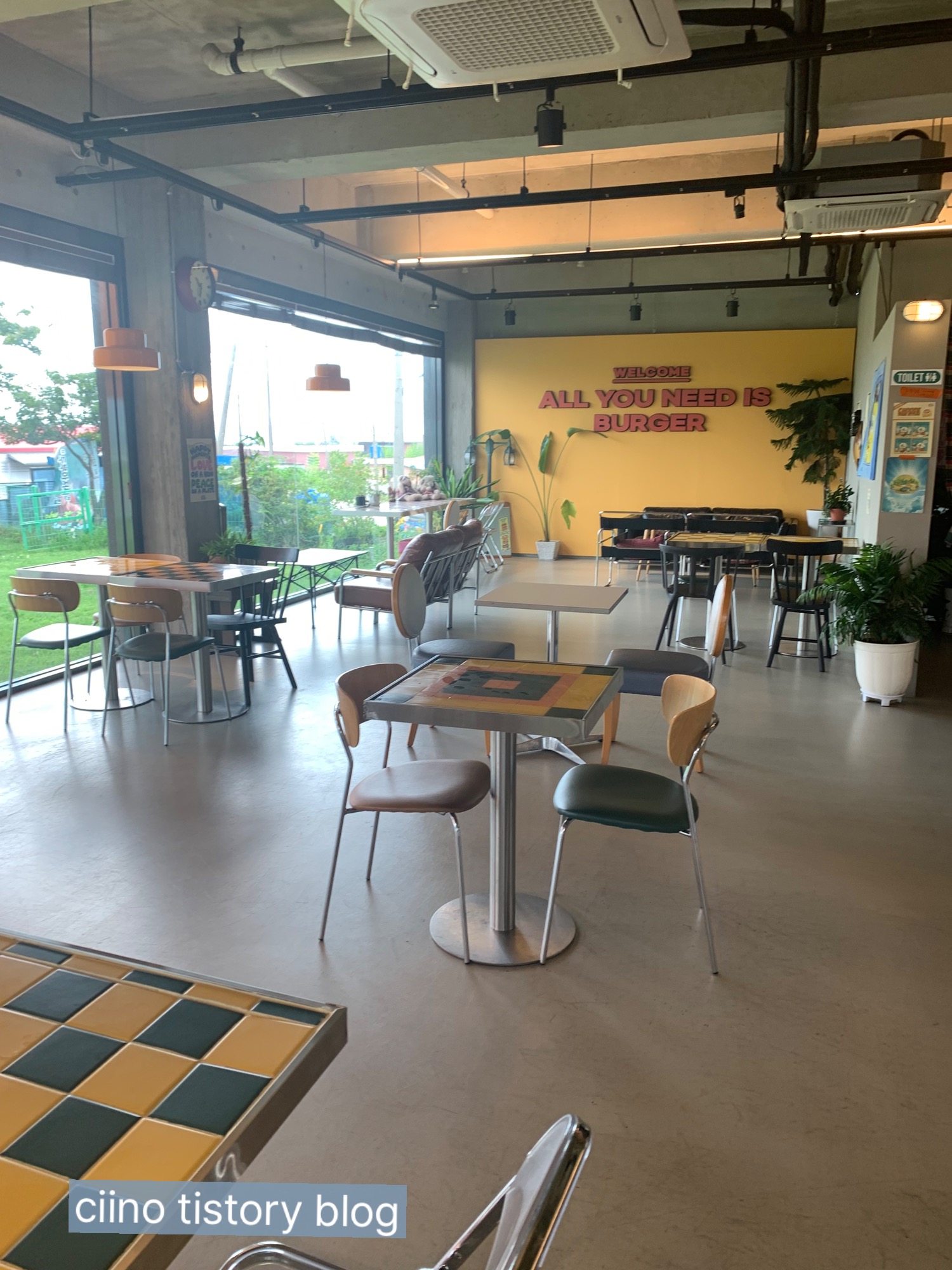 버거 플러피는 넓은 실내에서 펼쳐진 논뷰를 보며 즐길수 있는 곳이었습니다