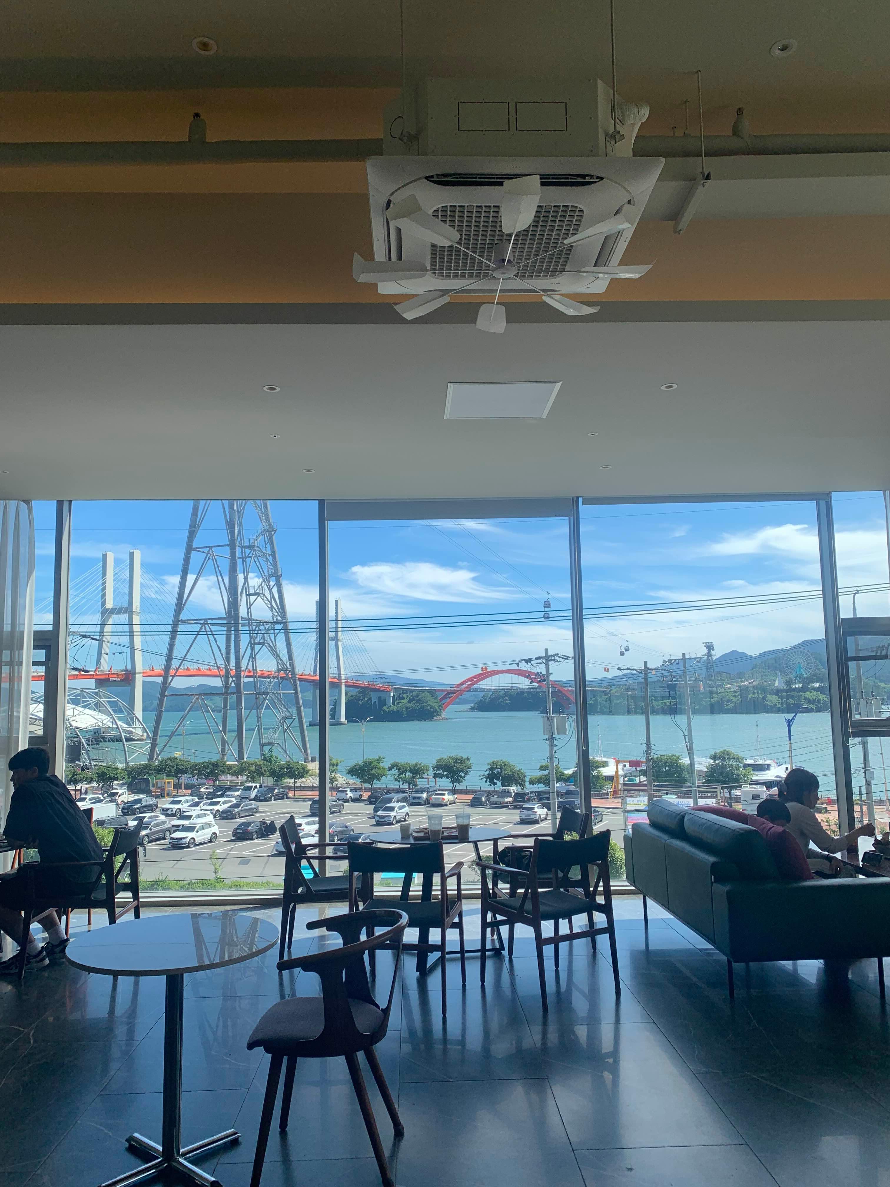 3층은 전면 유리창으로 삼천포대교와 바다가 시원하게 보여서