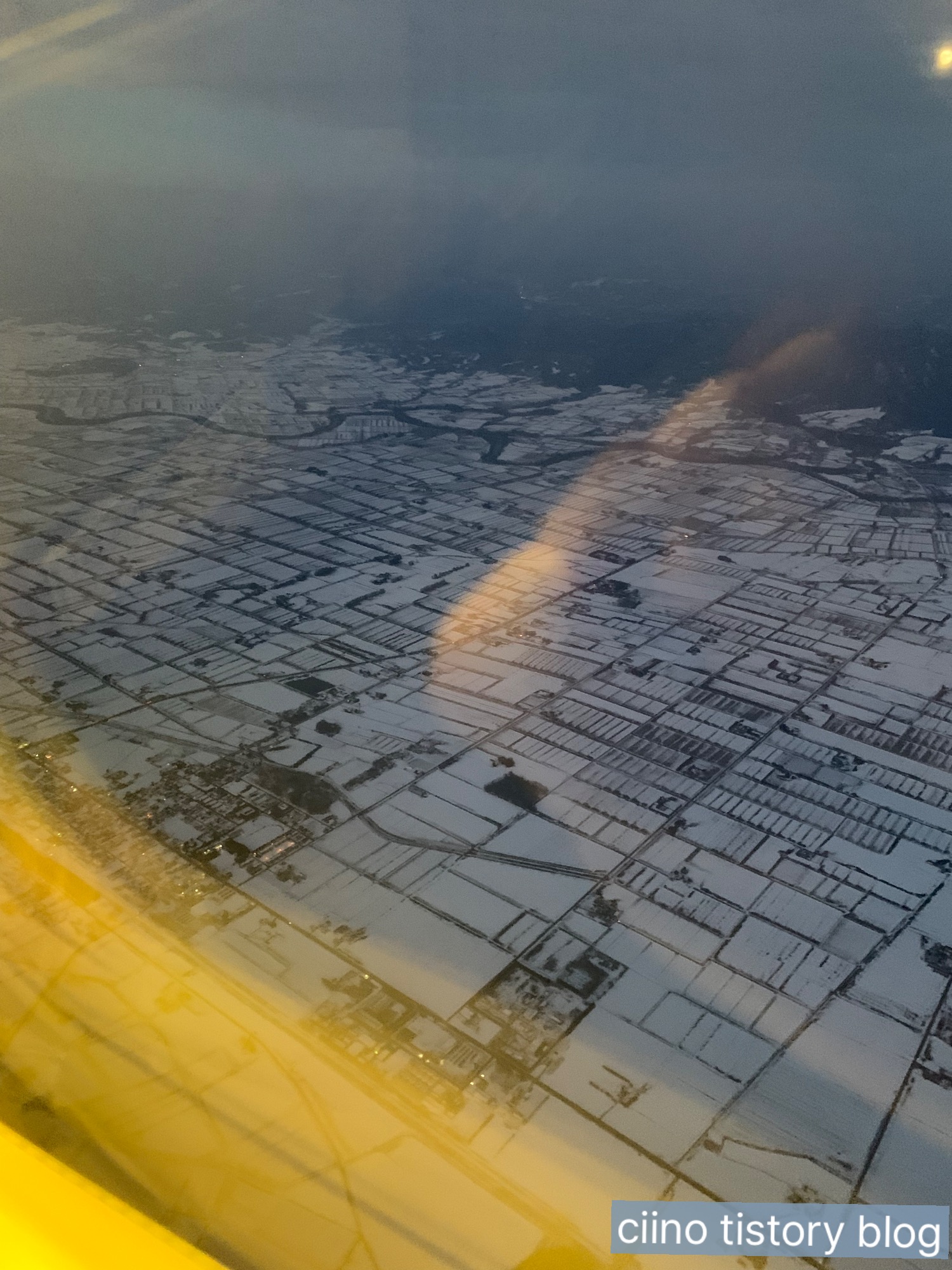 출발 전날 옥상에 눈이 조금 쌓인 걸 발견했어요